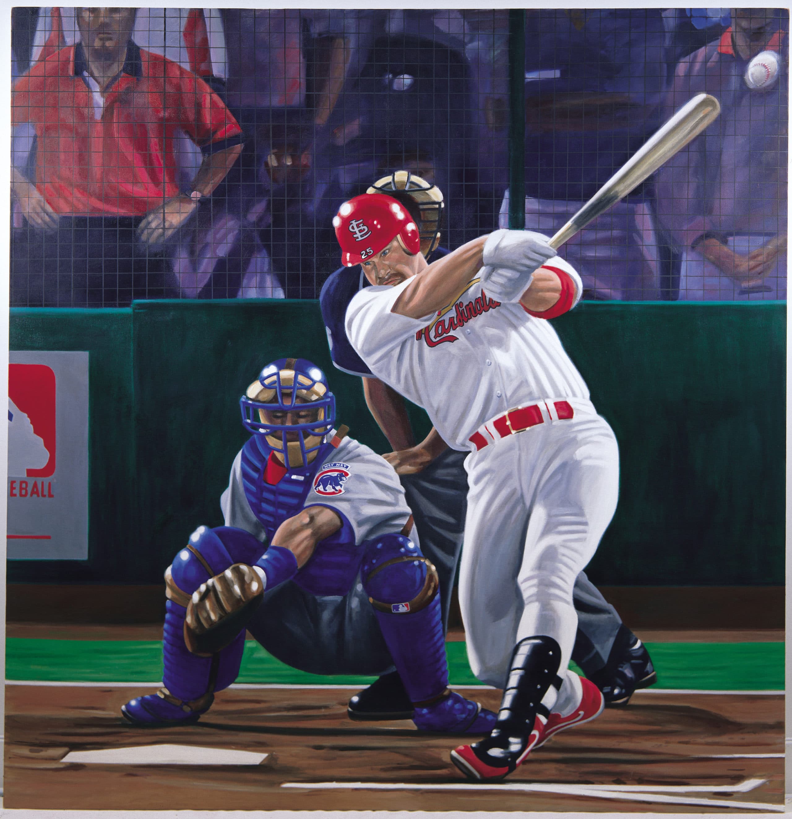 The whole nation is watching. It’s the night of September 8, 1998, at Busch Stadium in St. Louis. The day before, slugger Mark McGwire had passed Babe Ruth with his 61st homer. Now it’s time to break Roger Maris’ 37-year-old record for home runs in a single season. The Cubs and Sammy Sosa are the opponent and Steve Trachsel is on the mound. It’s the bottom of the fourth. There are two outs, and the bases are empty as the Cubs’ right-hander delivers his first pitch to the Cardinals’ 34-year-old first baseman. It’s a knee-high fastball. And McGwire gets it, sending a screaming line drive down the leftfield line and over the wall for home run No. 62! A Jubilant McGwire misses first base and has to retreat as the crowd of 43,688 goes wild. He is greeted at the plate by his 10-year-old son and his teammates. An 11-minute delay ensues as McGwire enters the stands to hug Maris’ children. Then he and Sosa embrace. Memories for a lifetime. And the Cardinals win the game, 6-3.
